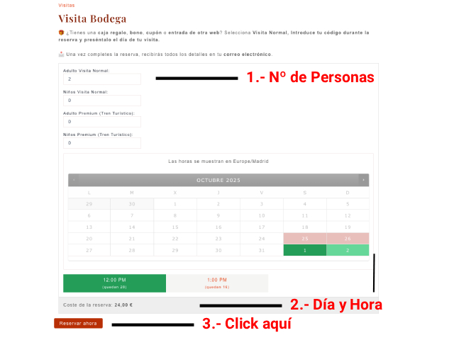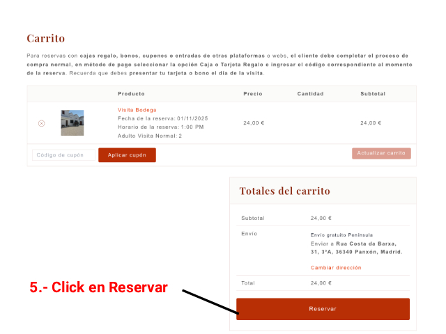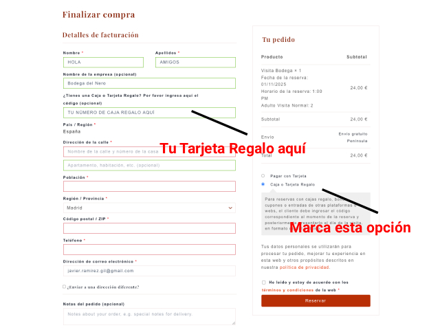 Si usted tiene una CAJA REGALO tiene que seguir los siguientes pasos para Reservar su Visita a Bodega del Nero.